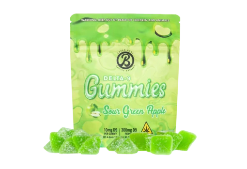 GUMMIES SOUR GREEN APPLE Unsere Delta-9 THC Gummies bieten dir ein süßes und zugleich entspanntes Erlebnis. In jedem Beutel findest du 30 Fruchtgummis, einzeln dosiert mit 10 mg Delta-9 THC – insgesamt 300 mg pro Packung. Ideal für kontrollierten und angenehmen Konsum.